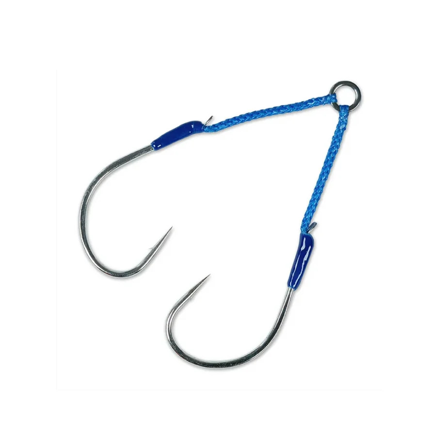 Built for situations where slightly longer reach is key, the Kinkai MS-Neo Double Long shares the same dependable hook design as the Short version—long shank, inward-facing tip, partial flat strike—for optimal penetration and holding power. Outfitted with Blue Assist Line 480 and reinforced with shrink tubing, it offers enhanced durability and visibility for nearshore jigging.
